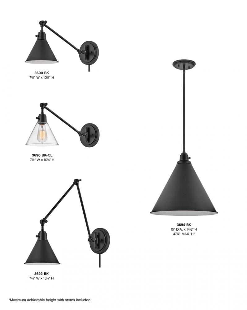 Hinkley 3691BK - Medium Swing Arm Single Light Sconce