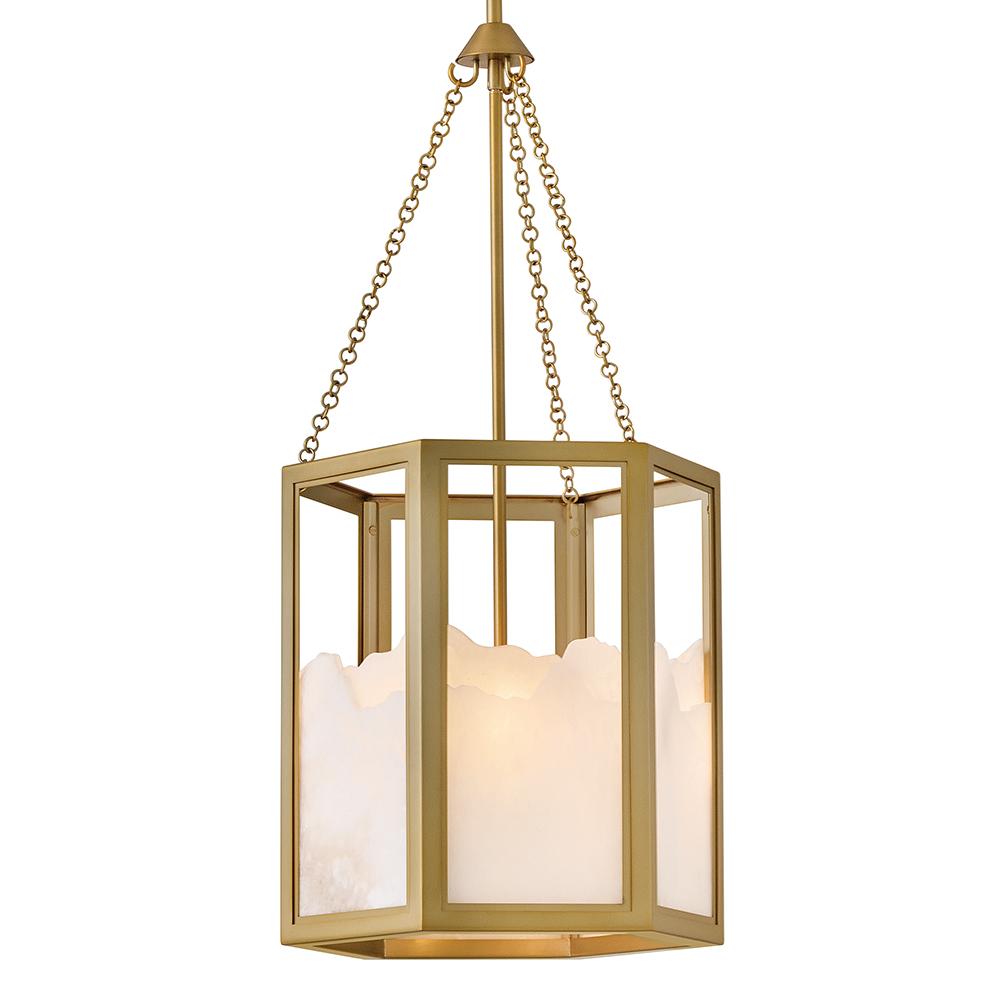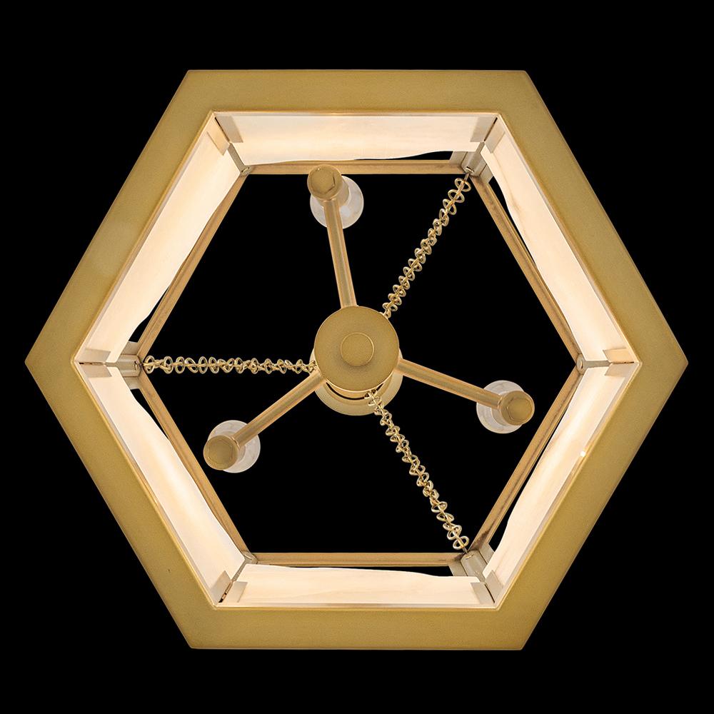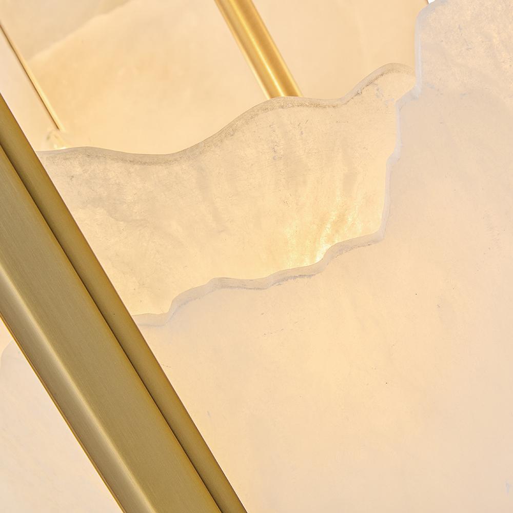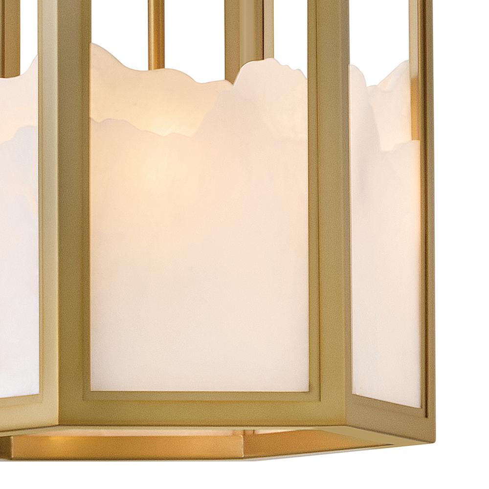 Inspired by Italian design, Valeta’s natural alabaster shade with jagged top edges is showcased by a geometric Lacquered Brass frame. Truly one-of-a-kind graining, color variations, and organically formed textures make each Veleta fixture genuinely unique.