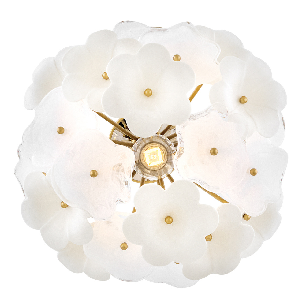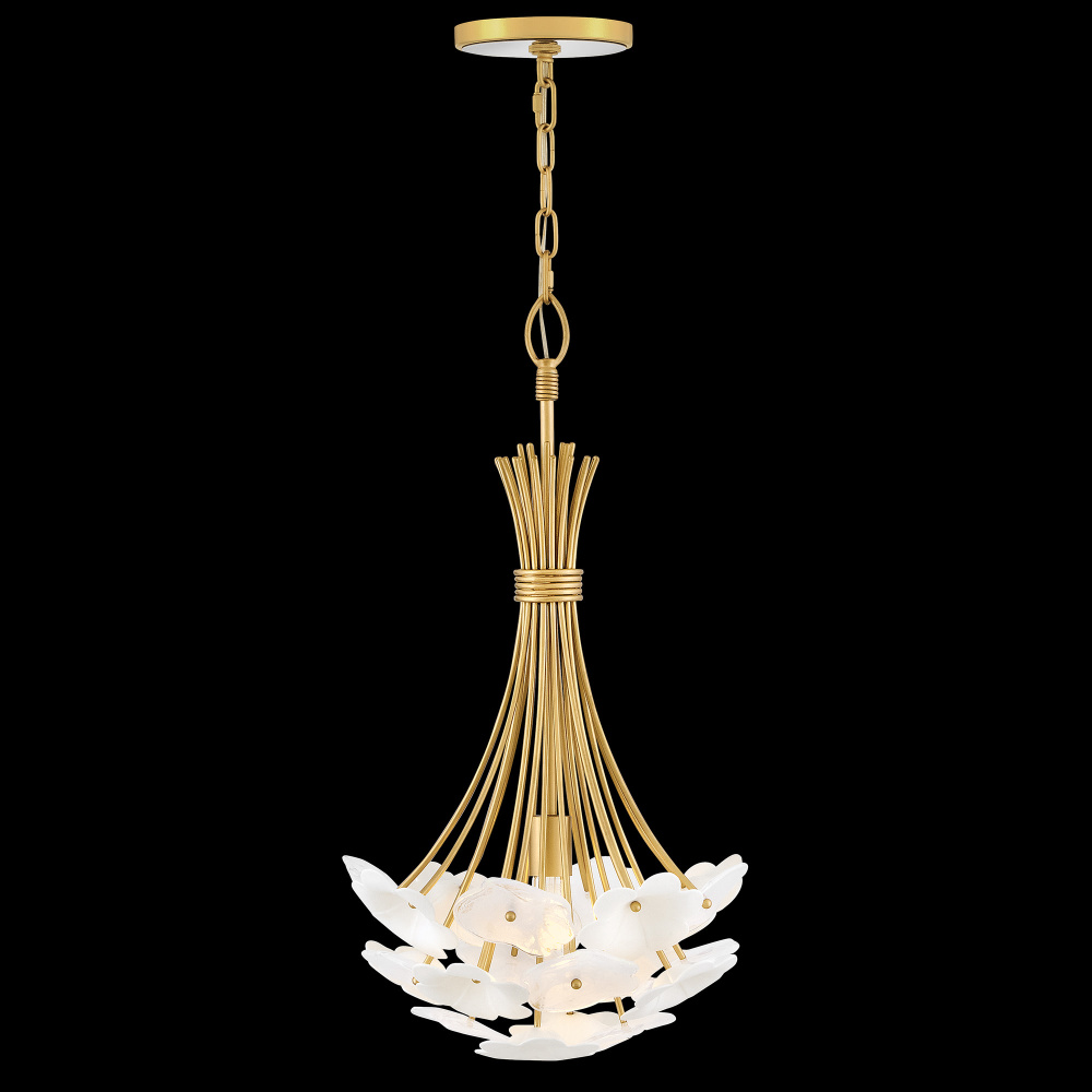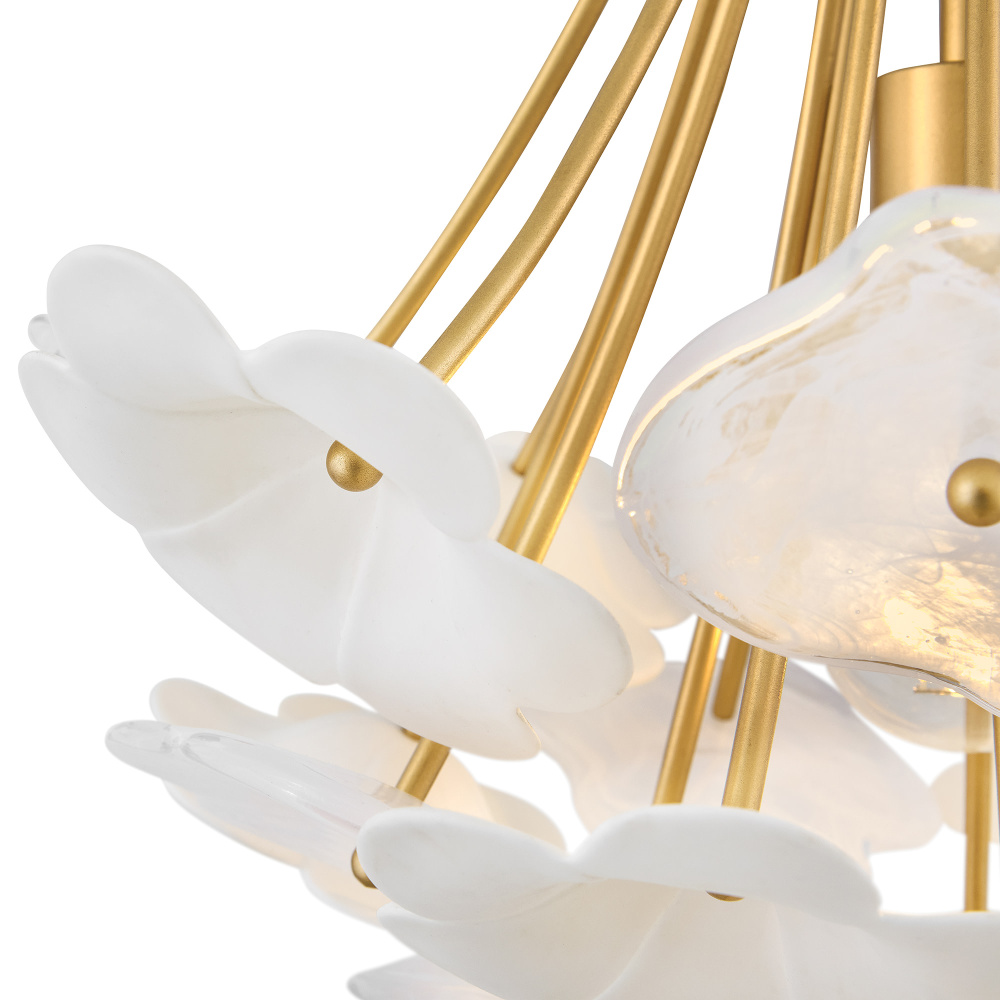 Decadently arranged in glamorous clusters, Marianne’s white glass and ceramic blossoms create an elegant, organically inspired silhouette enhanced by a luxurious glow. Intricate frames in our Deluxe Gold finish capture warm, inviting illumination