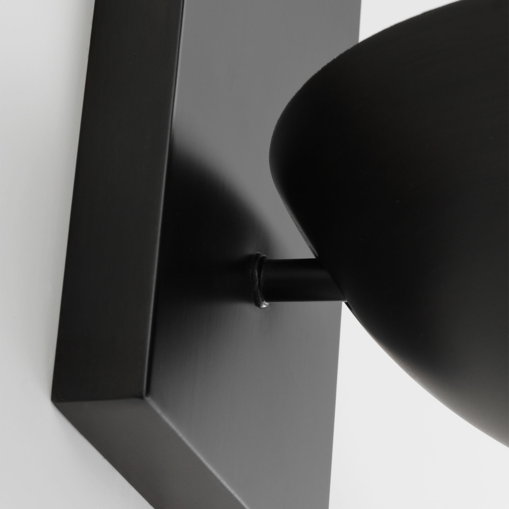 A rectangular backplate acts as a dramatic base for the bowl-shaped light, bringing a warm glow to your space.