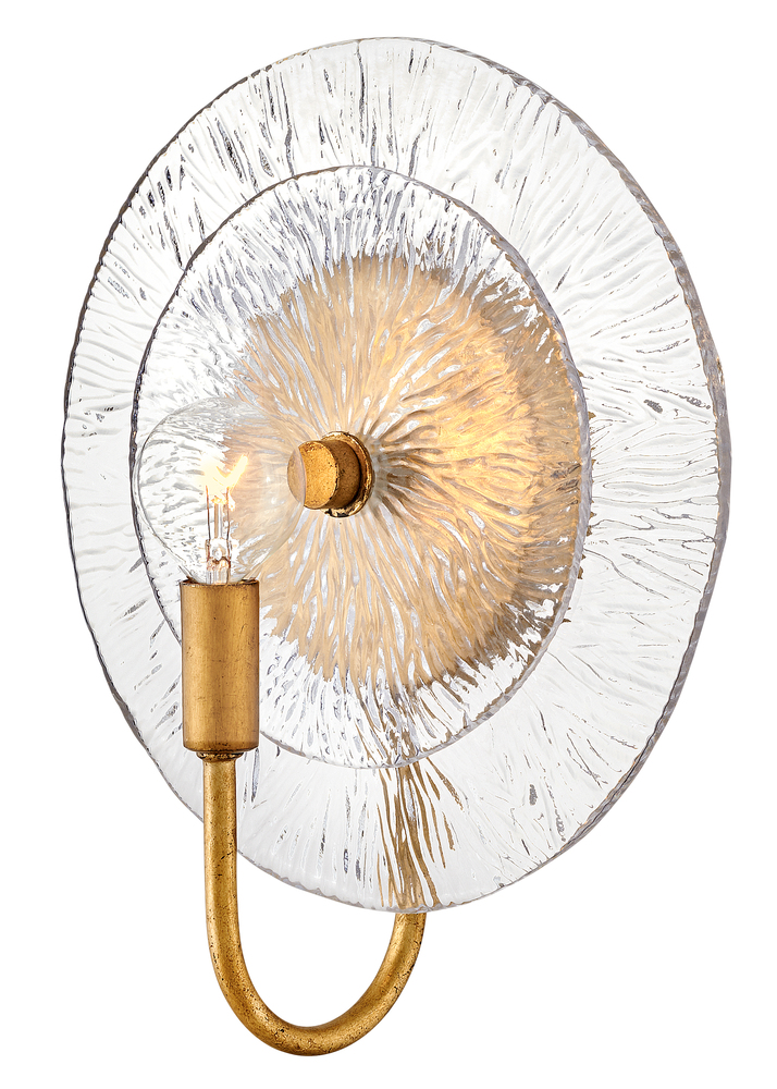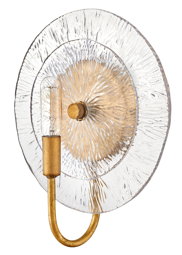 Rene radiates light through multiple layers of beautiful, pressed glass disks. Rene’s signature touch highlights a Distressed Brass finish, evoking both transitional and glam influences.