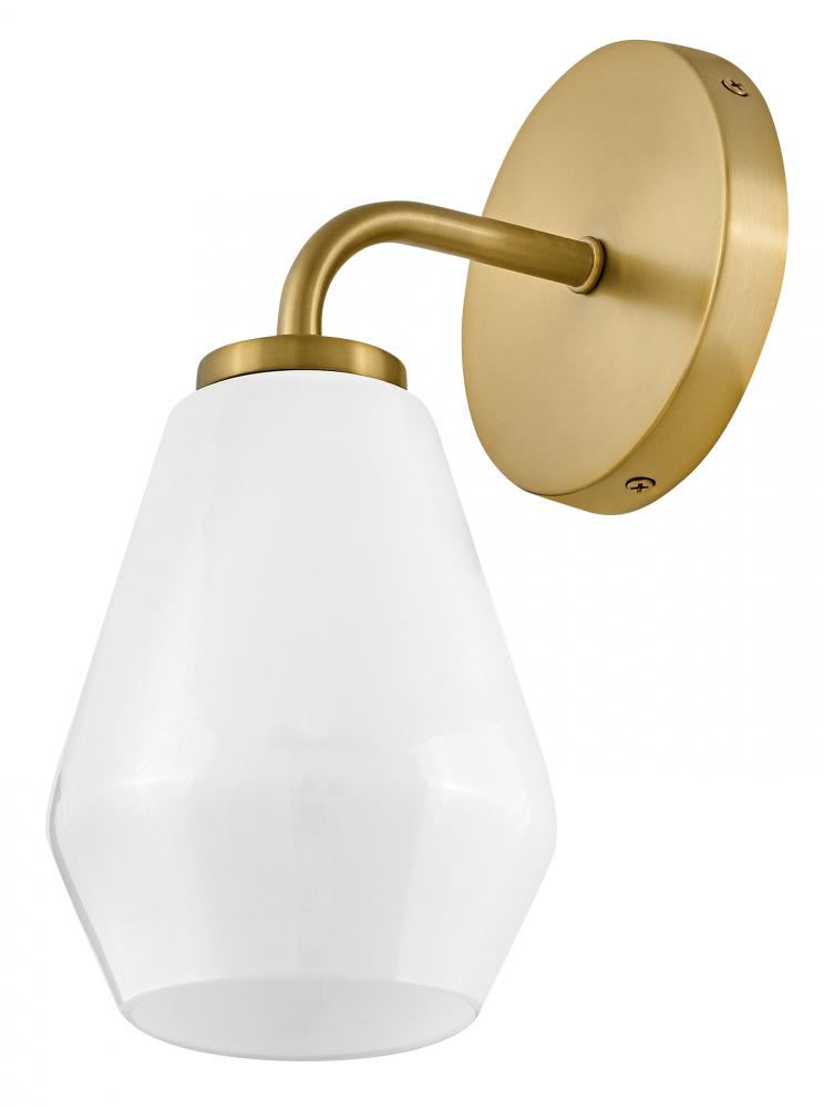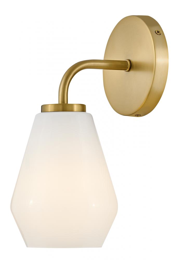 Subtle geometric elements find harmony within the sleek, curved lines of Gio. The cased opal glass covers the space in functional, diffused light while providing a nice contrast to the bold variety of finish colors. Gio’s transitional glam design and clean profile add to any bath décor.
