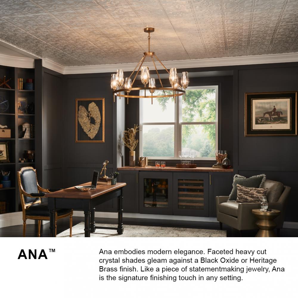 Ana embodies modern elegance. Faceted heavy-cut crystal gleams against a Black Oxide or Heritage Brass finish. Like a piece of statement-making jewelry, Ana is the signature finishing touch in any setting.