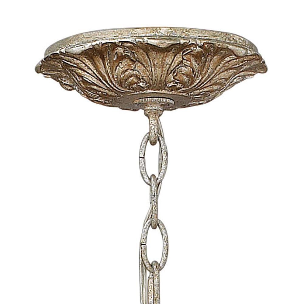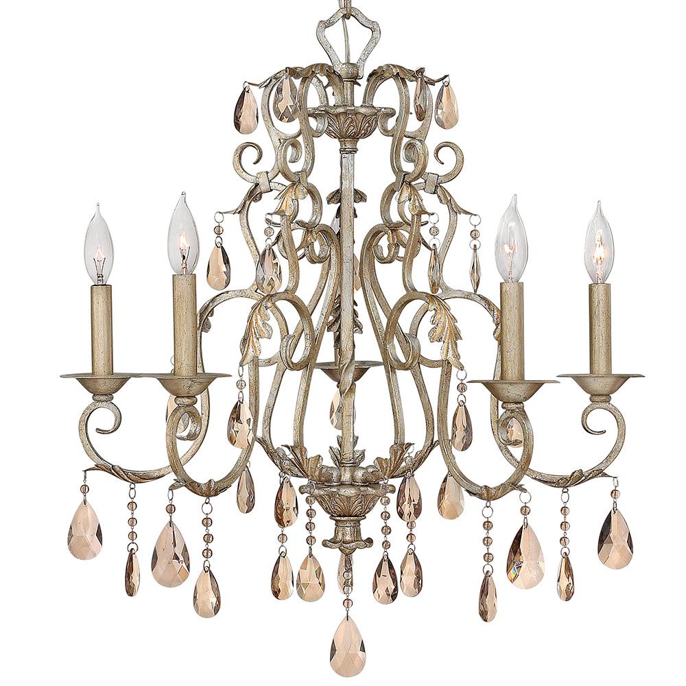 Carlton's elegant petite candelabra iron design, finished in authentic Silver Leaf, makes a sophisticated statement with luxurious amber pearl crystals, optional translucent organza shade and ornate details.