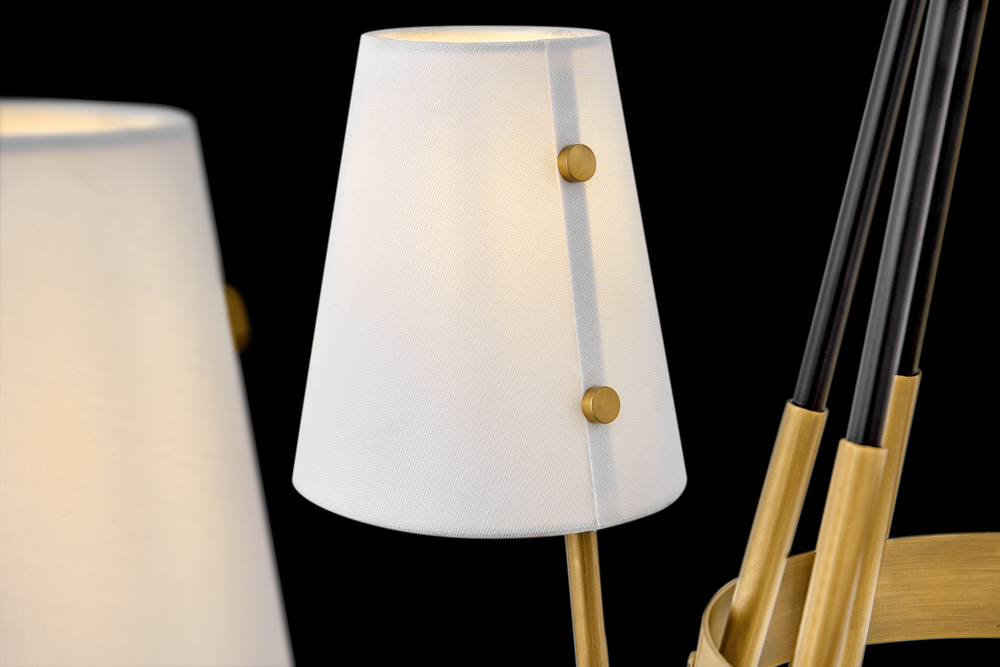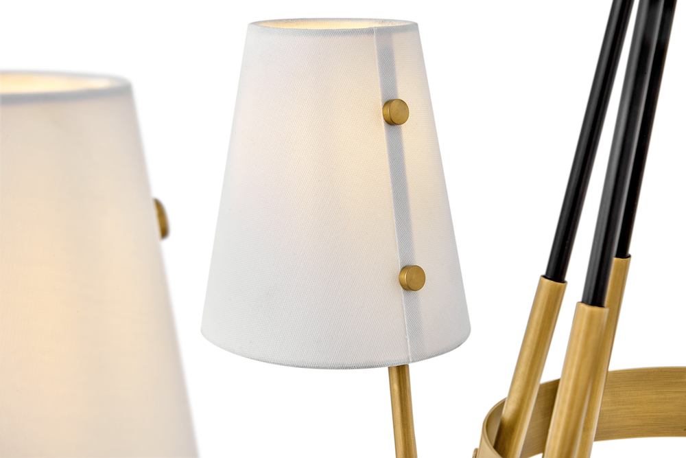 Aston breathes true tradition. Elegantly curved arms in contrasting finishes meet tapered offset shades. Exuding classic style, Aston is available in a Heritage Brass with Black finish.