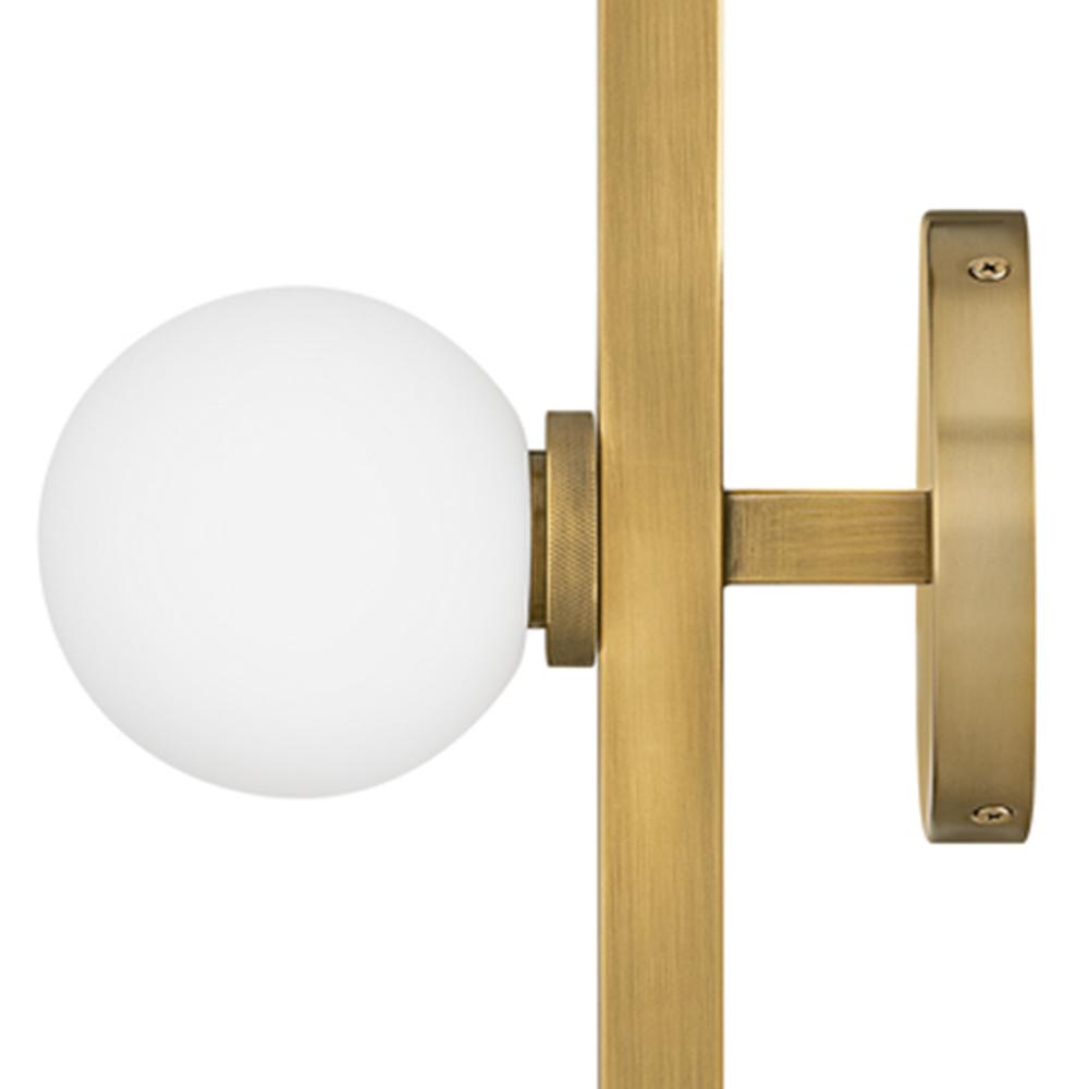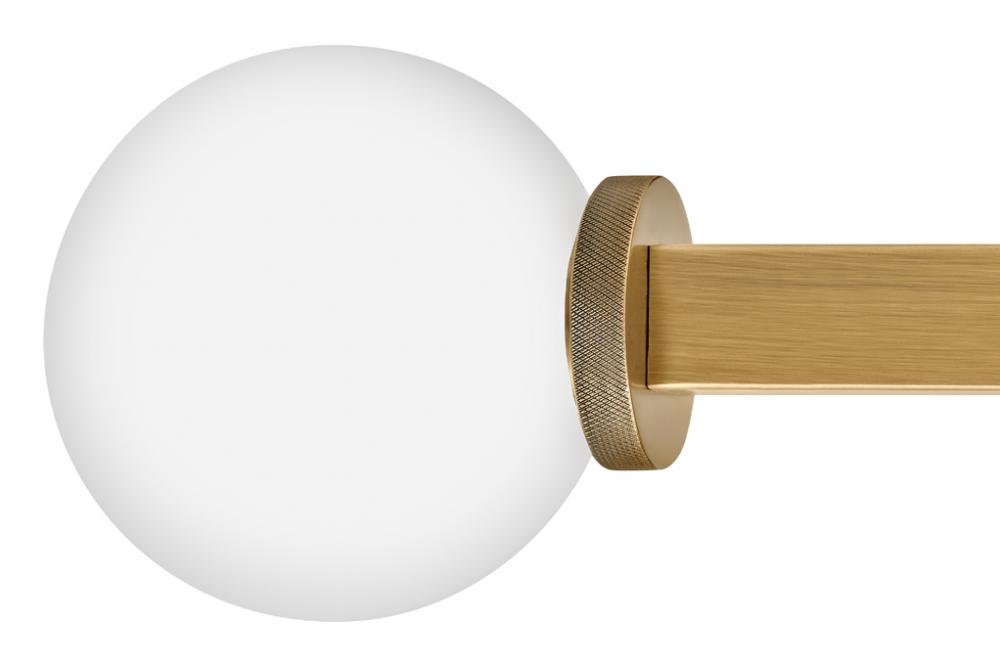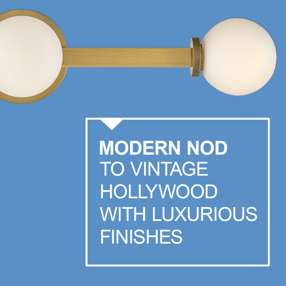 Audrey gives a modern nod to vintage Hollywood vanity lights thanks to luxurious finishes and beautifully knurled details that offset etched opal glass globes. Audrey incorporates the best of both transitional design elements and mid-century-inspired style. Available in Heritage Brass or Black Oxide finish options, this versatile fixture can be mounted horizontally or vertically for added customization.