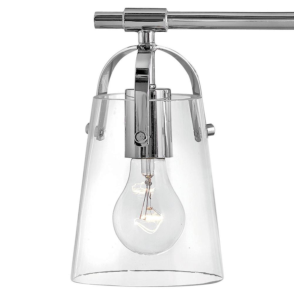 Clean and airy, Foster breathes composed simplicity into any bath space. Softly tapered glass shades suspended from arched handle prongs create a sophisticated transitional silhouette, enhanced by practical yet stylized details.