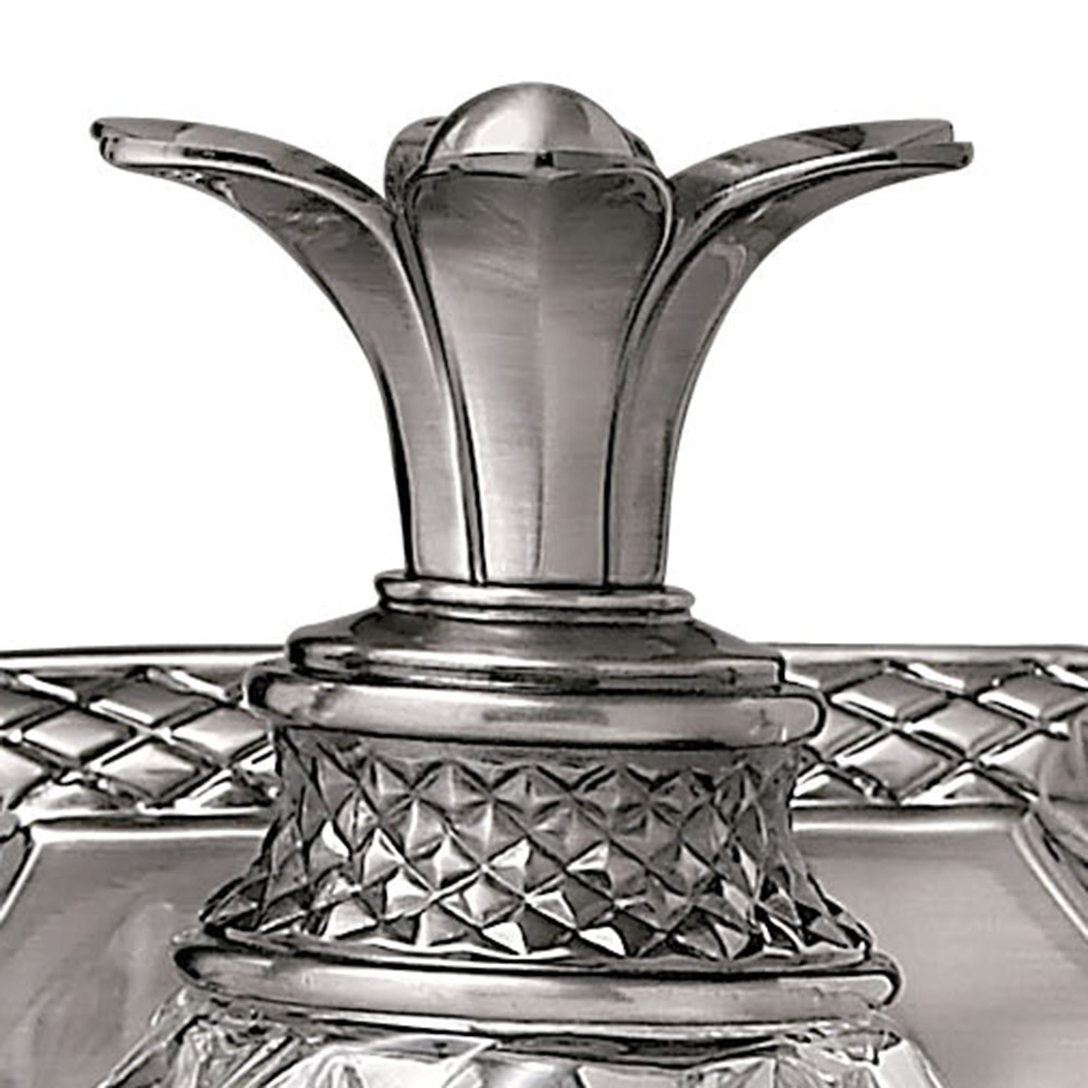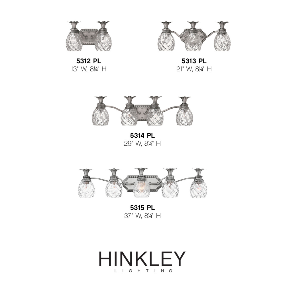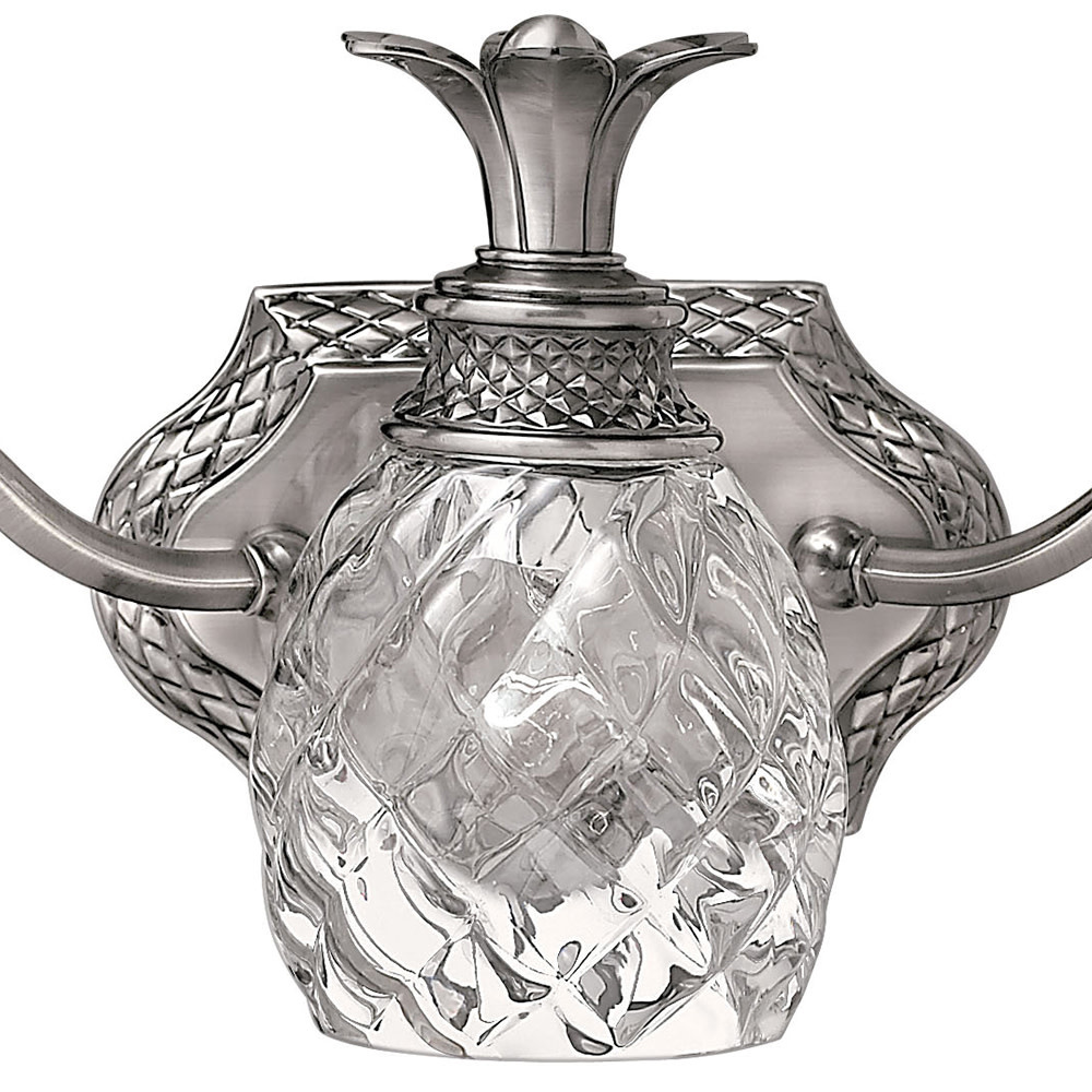 A Hinkley classic, the ornate Plantation collection features exceptional pineapple shaped, clear optic glass that makes a noble statement. The elaborate, decorative cast detailing is accentuated by its lush finish.
