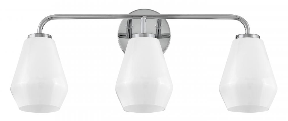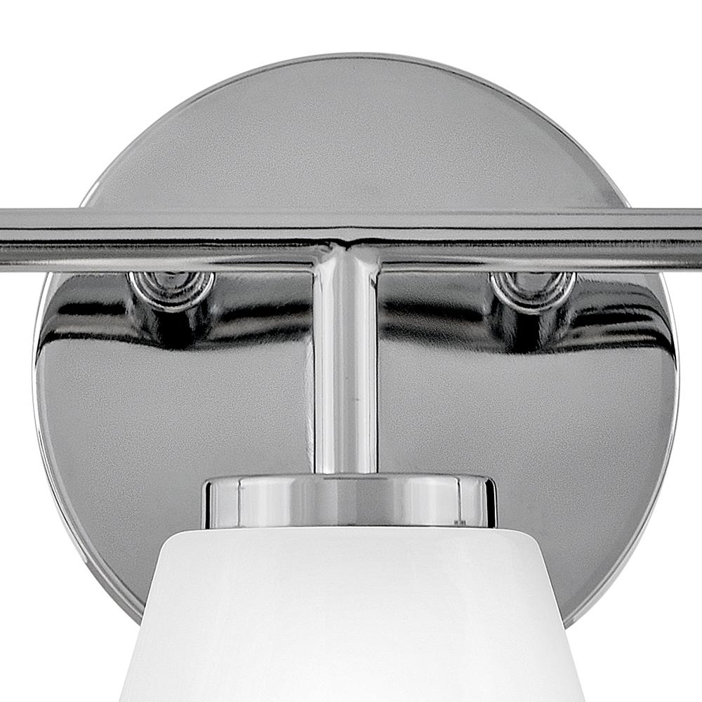 Subtle geometric elements find harmony within the sleek, curved lines of Gio. The cased opal glass covers the space in functional, diffused light while providing a nice contrast to the bold variety of finish colors. Gio’s transitional glam design and clean profile add to any bath décor.