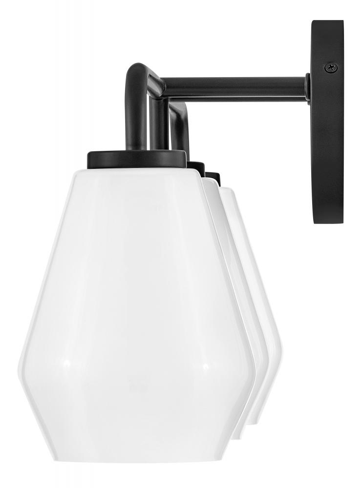 Subtle geometric elements find harmony within the sleek, curved lines of Gio. The cased opal glass covers the space in functional, diffused light while providing a nice contrast to the bold variety of finish colors. Gio’s transitional glam design and clean profile add to any bath décor.