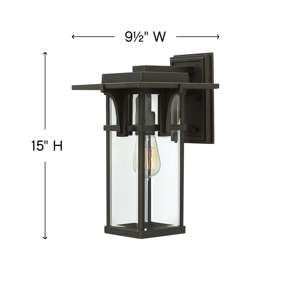 Manhattan is a classic update to the traditional train station lantern. The hand-painted Oil Rubbed Bronze finish complements the clean lines of its durable die-cast construction.