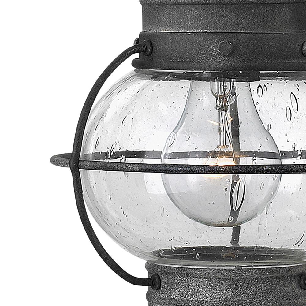 Cape Cod’s classic onion lantern design conveys New England style. Bold caged lines highlight the sturdy profile, while the clear seedy glass adds to the vintage appeal.