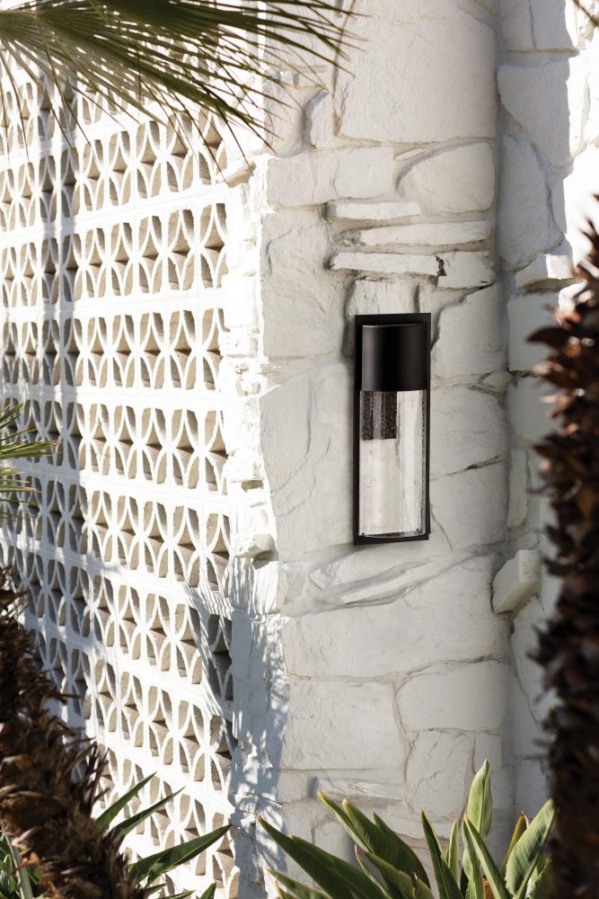 Shelter’s minimalist style in aluminum creates a chic, dramatic statement as the light from above grazes through its clear seedy glass. Shelter comes standard Dark Sky compliant.