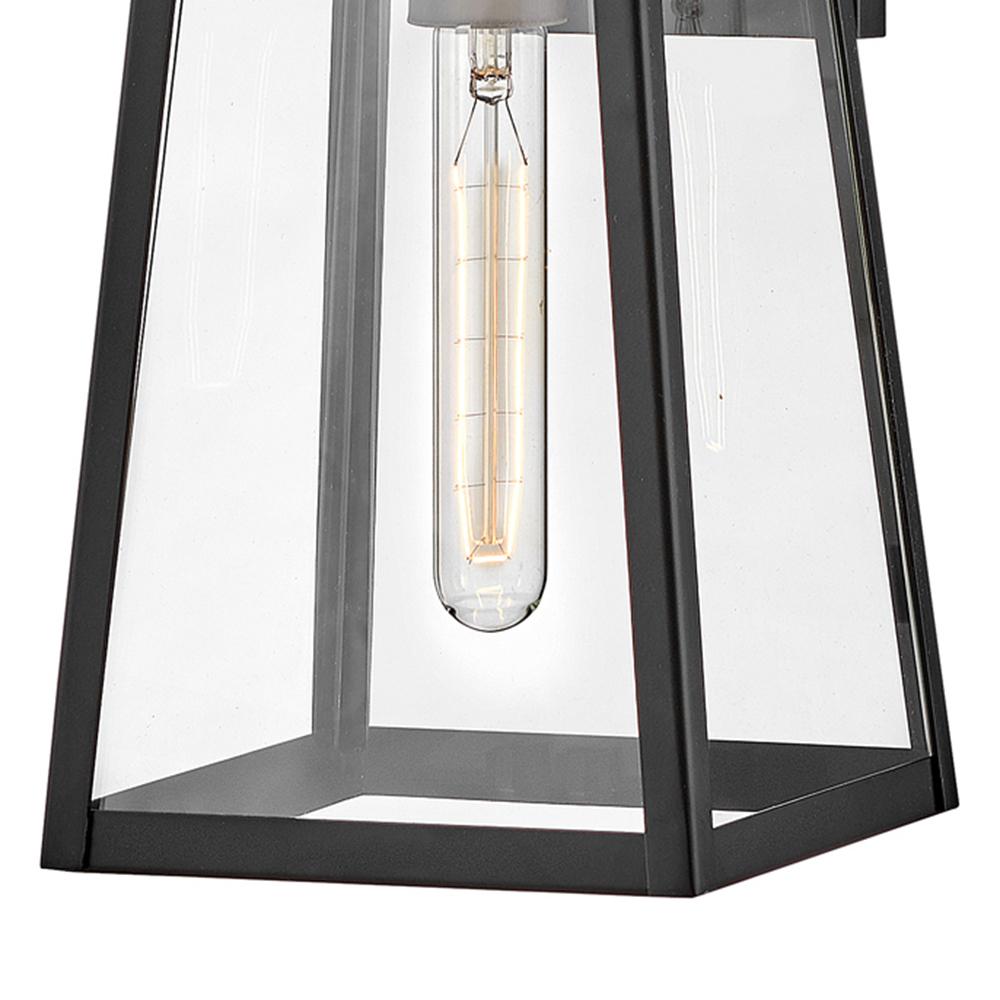 Hype up your alfresco area with the Hugh outdoor lantern and its sleek transitional style. The trapezoidal design features bold over scaled clear glass panes framed by carefully curated two-tone metal finish options to inject a modern edge. Choose from classic Antique Brushed Aluminum with a matte Black accent or a rich Black with a warm Burnished Bronze accent. Pro tip: we recommend a tubular vintage filament bulb to make Hugh pop on porches, patios or amp up any exterior space.