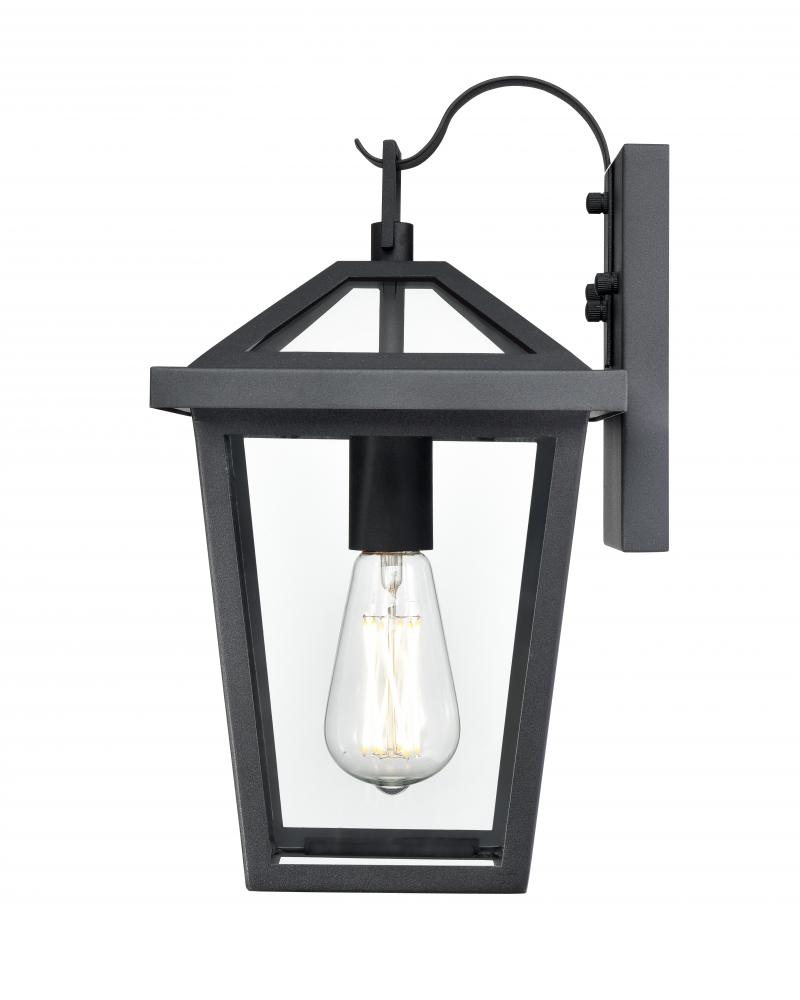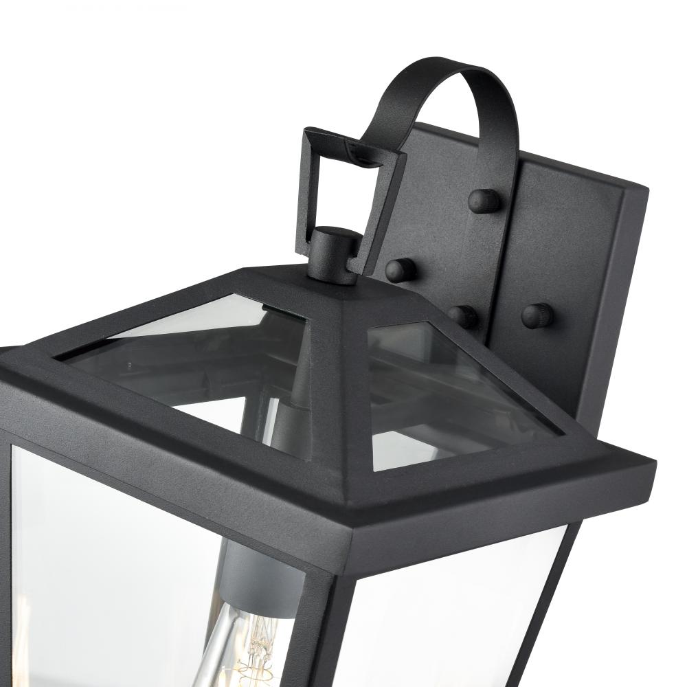The Mensun Collection of outdoor sconces is characterized by its archetypal Georgian era form with a tapered silhouette and capped with an open canopy, allowing maximum illumination. Available as 1-light, 2-light and 3-light options, the fixtures are finished in textured black and intended to create a stately presence, lighting common areas or flanking entryways and garages.