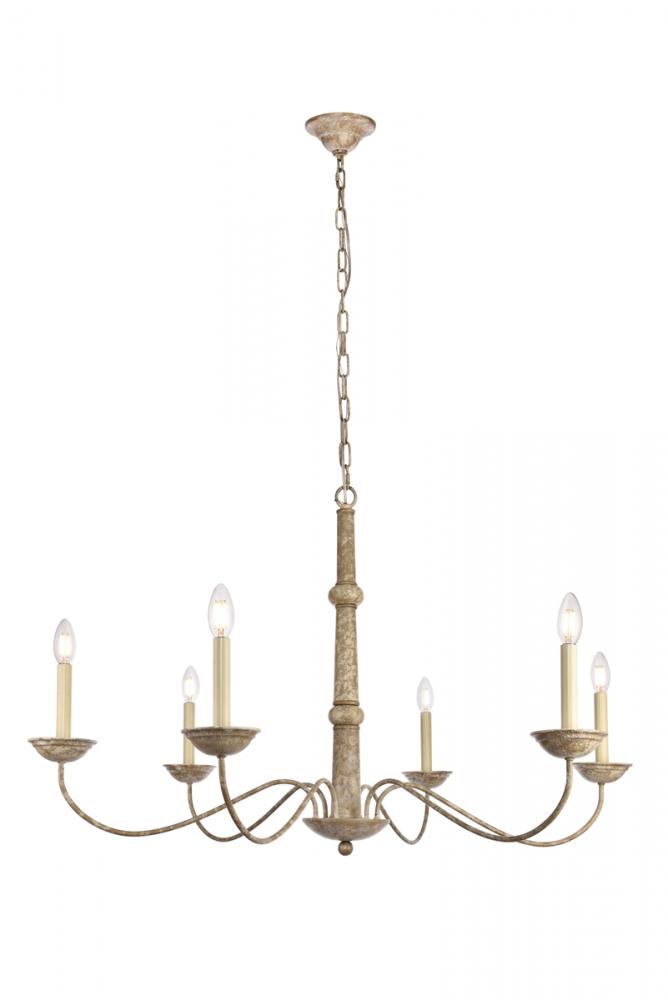 Elegant LD6007D40WD - Merritt Collection Chandelier D39.8 H24 Lt:6 Weathered Dove Finish