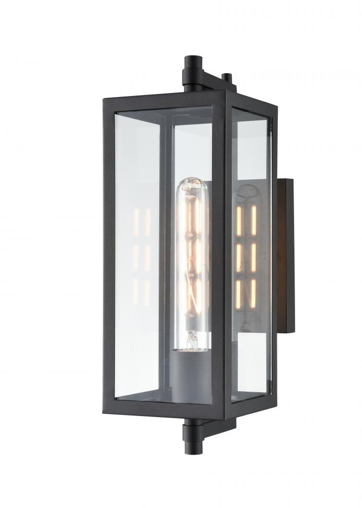 The Messi Collection of outdoor sconce lighting strikes the perfect visual balance with precise lines. The steel-constructed framework encases crystal-clear partial glass panels for an ultra-modern effect. This single light fixture creates a smart addition to any modern space, unifying the bold lines of contemporary home design, and is finished in texture black.