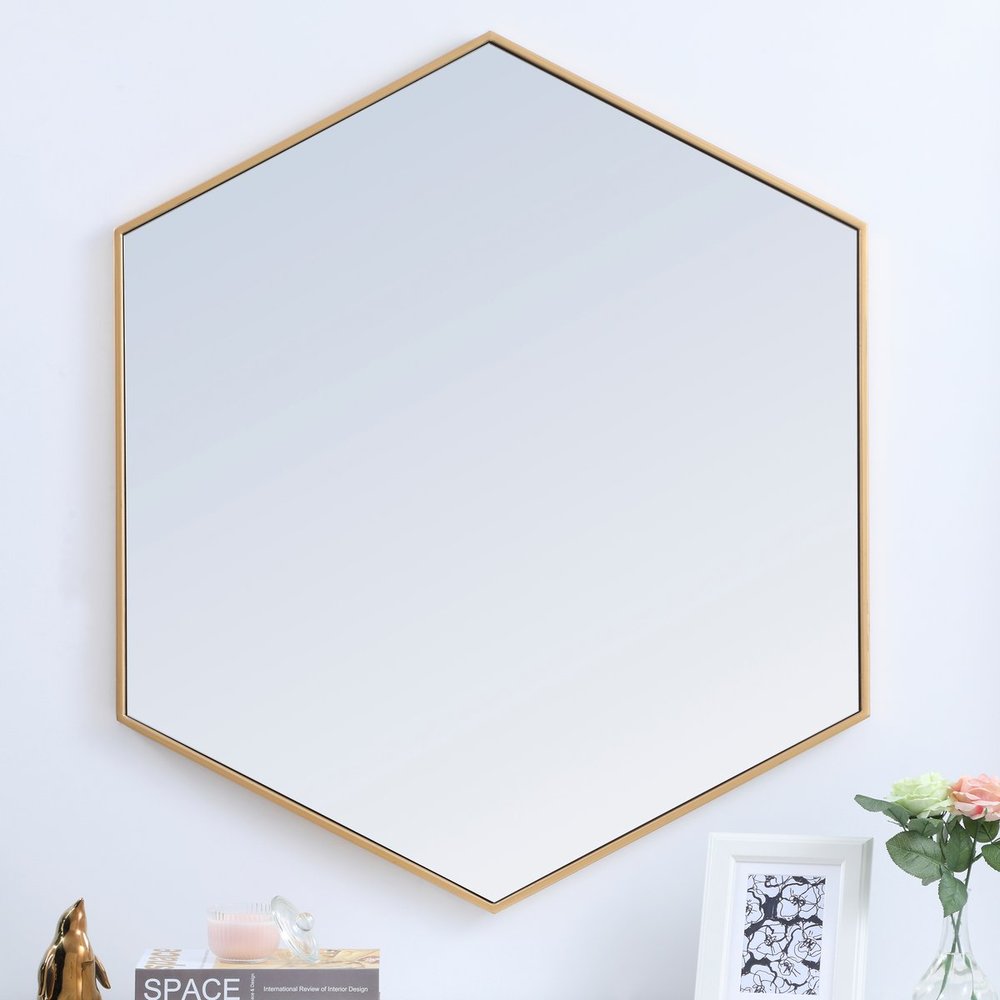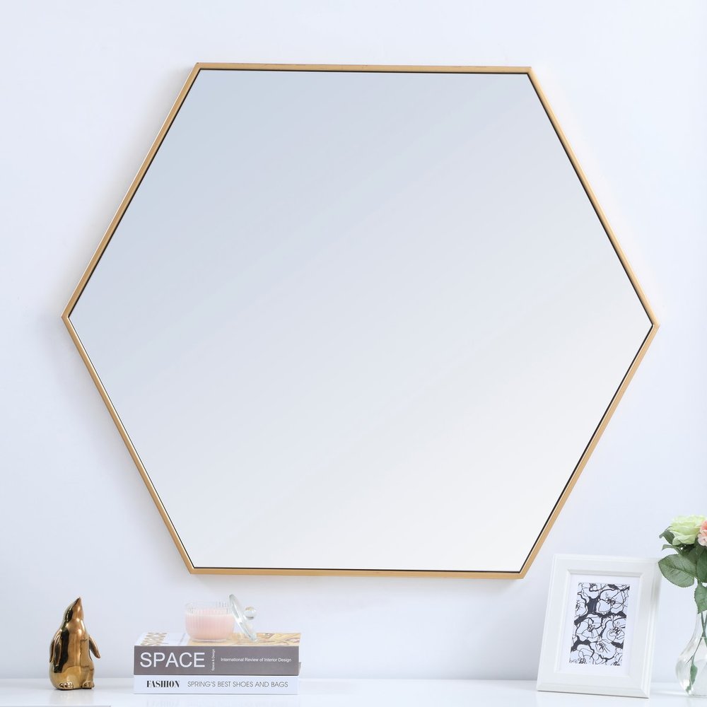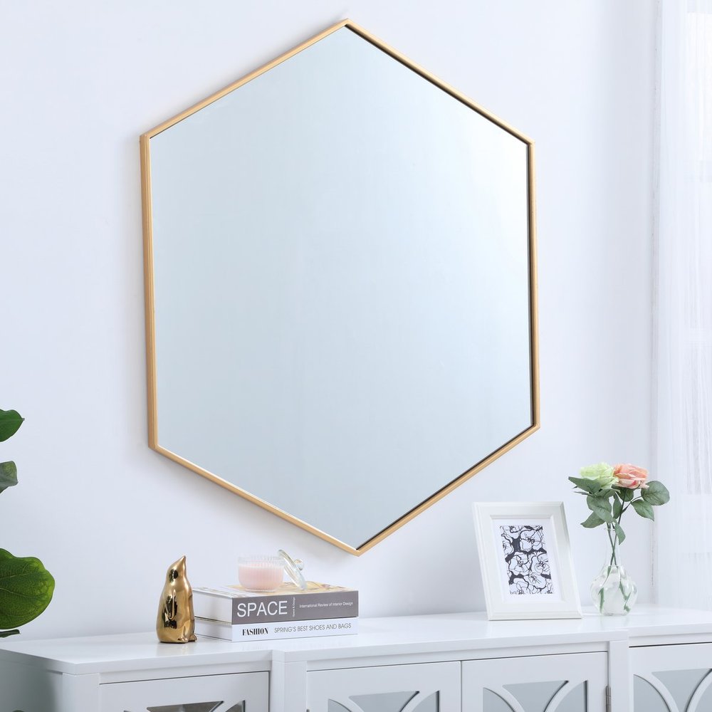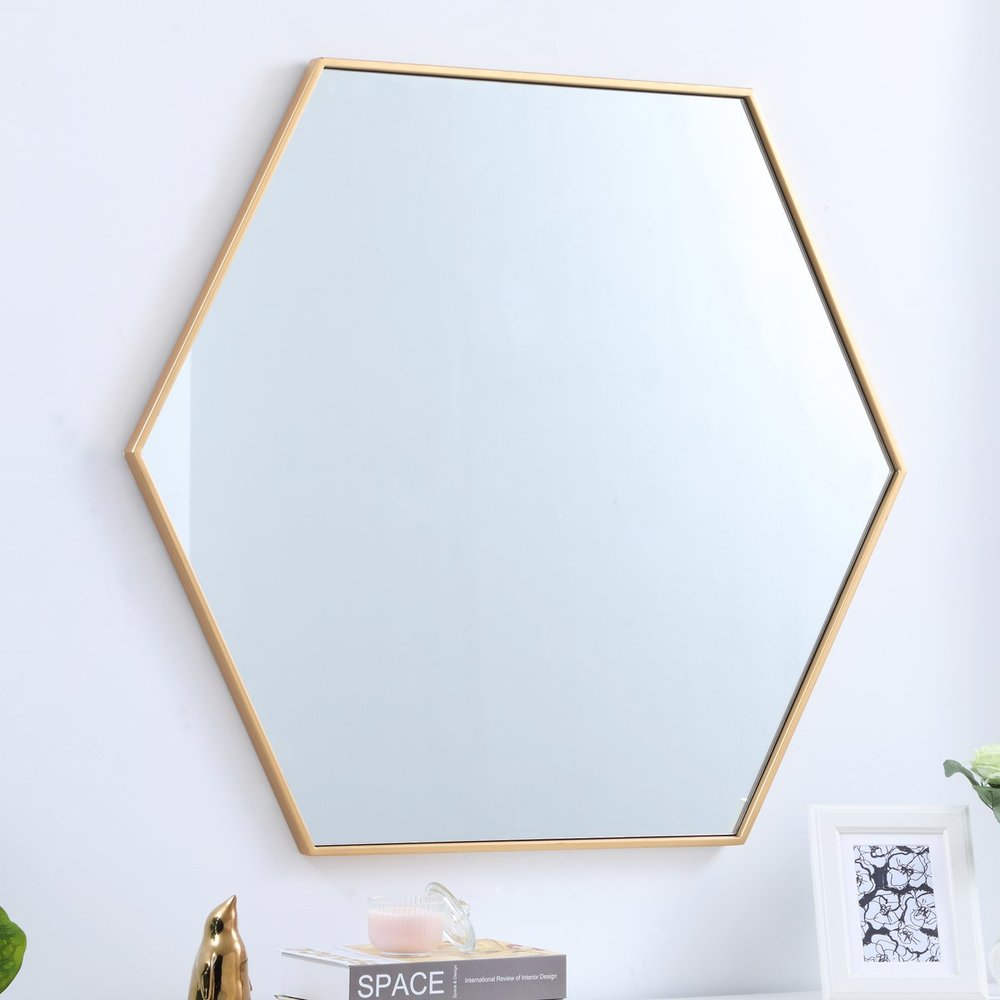 Add a bit of visual fun to your home with this playful hexagonal-shaped mirror. Its stylish personality will mingle with your décor and create a mesmerizing display of contemporary excitement. The clear mirror opens the visual space of your room, while the slender metal frame adds subtle color. Available in a black, brass or Silver finish and comes in a variety of sizes--it's the perfect mirror for any sized home.