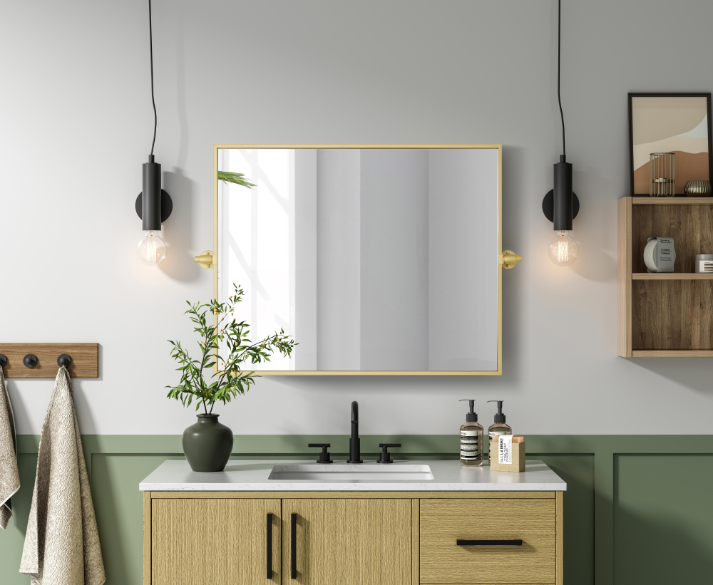 Upgrade your space with a modern pivot mirror that offers both form and function. Featuring an adjustable 8-degree tilt, this mirror allows you to customize your viewing angle for convenience and style. The iron frame with MDF backing ensures durability, while the hand-painted finish—available in black, silver, and brass—adds a touch of sophistication. Designed for versatility, this rectangular mirror can be mounted vertically or horizontally, making it the perfect fit for bathrooms, bedrooms, offices, and more. Its slim metal frame provides a sleek, contemporary aesthetic that blends seamlessly into various design styles. With included mounting brackets and screws, installation is simple and secure, giving your space an instant refresh. Whether you’re getting ready for the day or enhancing your home décor, this pivot mirror delivers both style and practi
