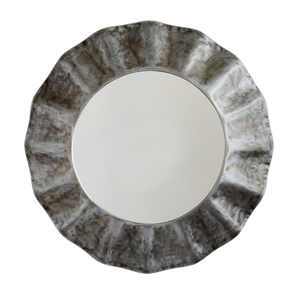 Metal frame mirror with Aged Zinc finish. Pleated Metal Frame.