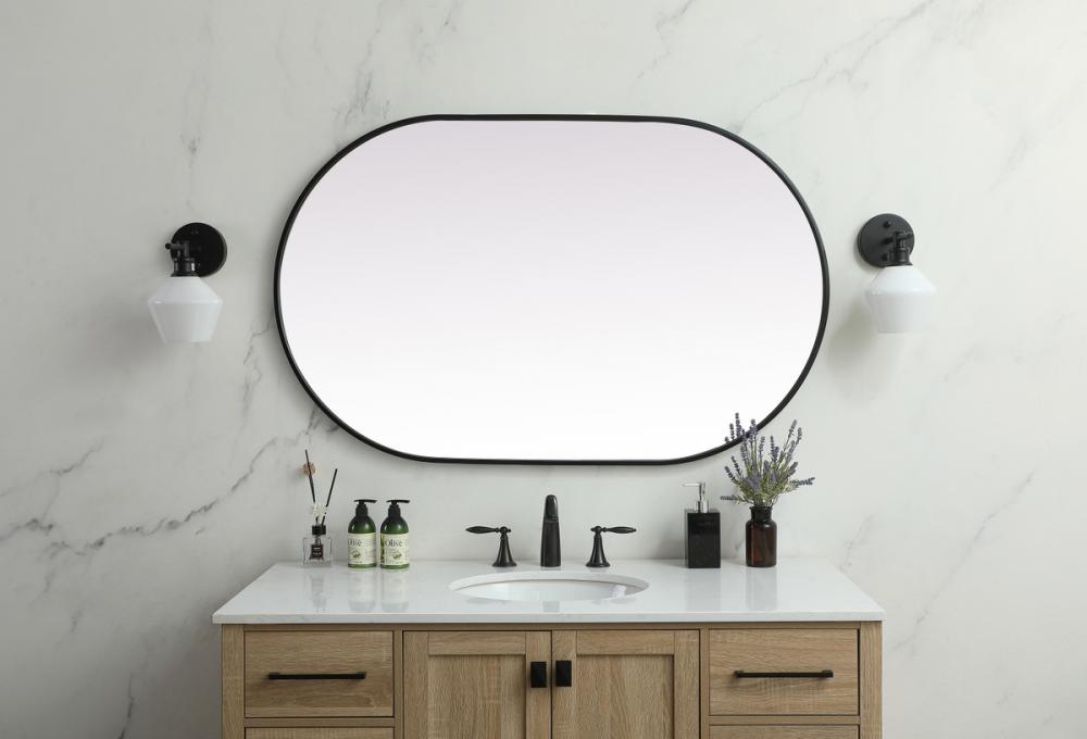 Metal Frame Oval Mirror 30x48 Inch in Black