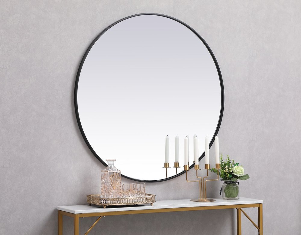 Elegant MR4839BK - Metal frame round mirror 39 inch in Black