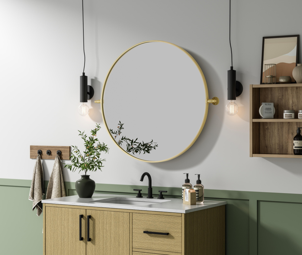 With an adjustable 8-degree pivot, this stylish round mirror adapts to your perfect angle, offering both beauty and function.