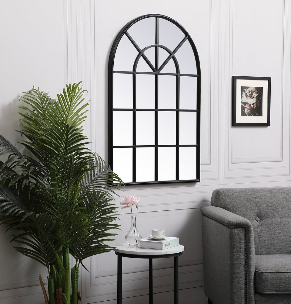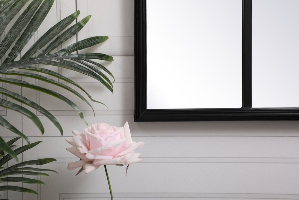 Elegant MR612842BK - Metal windowpane mirror 28 inch x 41 inch in in Black