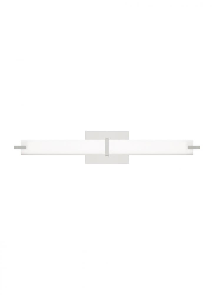 The Metro bath bar light by Sean Lavin is sophisticated and modern in design. Available in multiple finish and color options. The Metro bath light can be mounted horizontally above a mirror or mounted vertically flanking a mirror as a wall sconce. Two length options allow this bath light to be adapted to powder room lighting as well as master bathroom lighting. Both size fixtures are fully dimmable with your choice of either incandescent or integrated LED lamping to create the desired ambiance in your unique space.