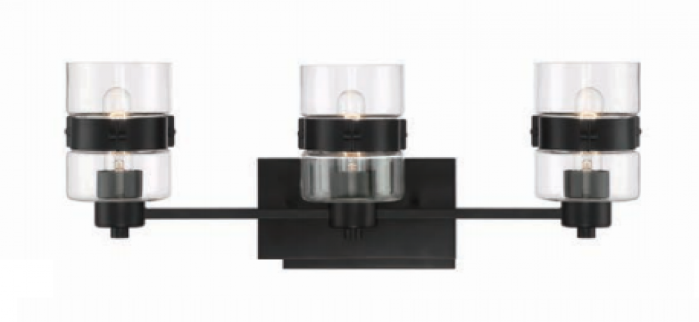 Matte Black 3 Light Vanity with clear glass shade is part of the Midnight LA collection
