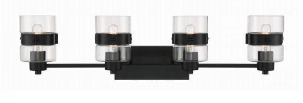 Matte Black 4 Light Vanity with clear glass shade is part of the Midnight LA collection