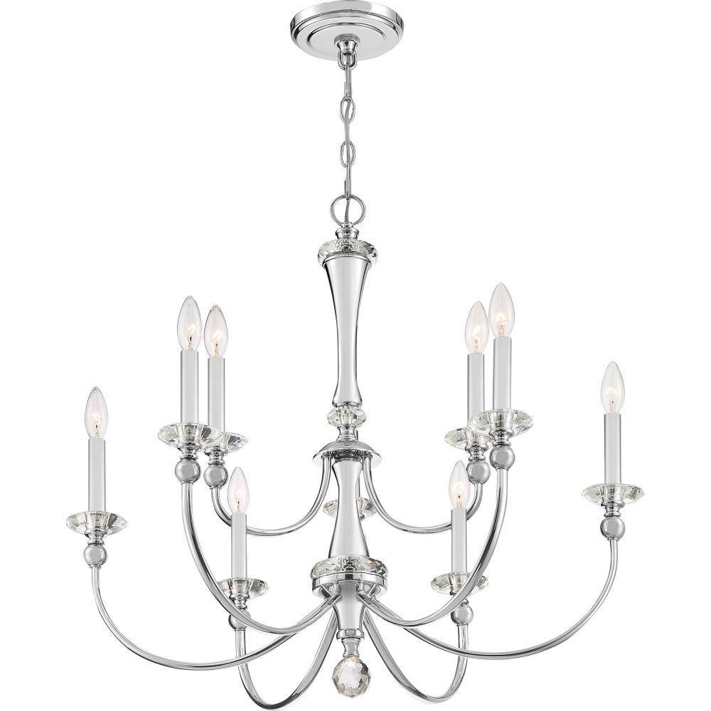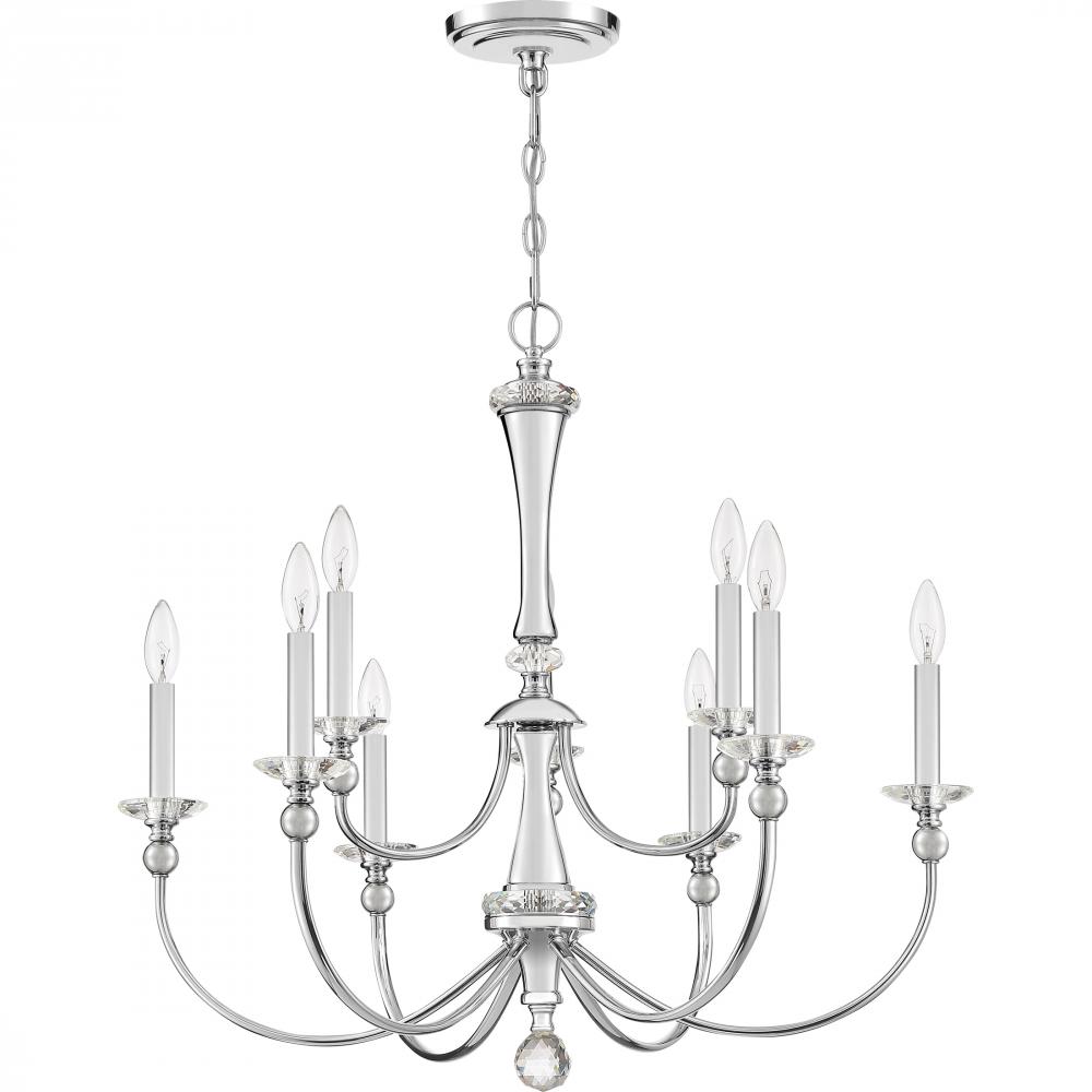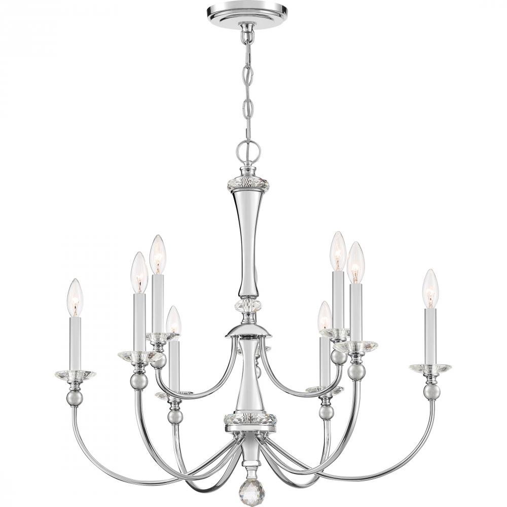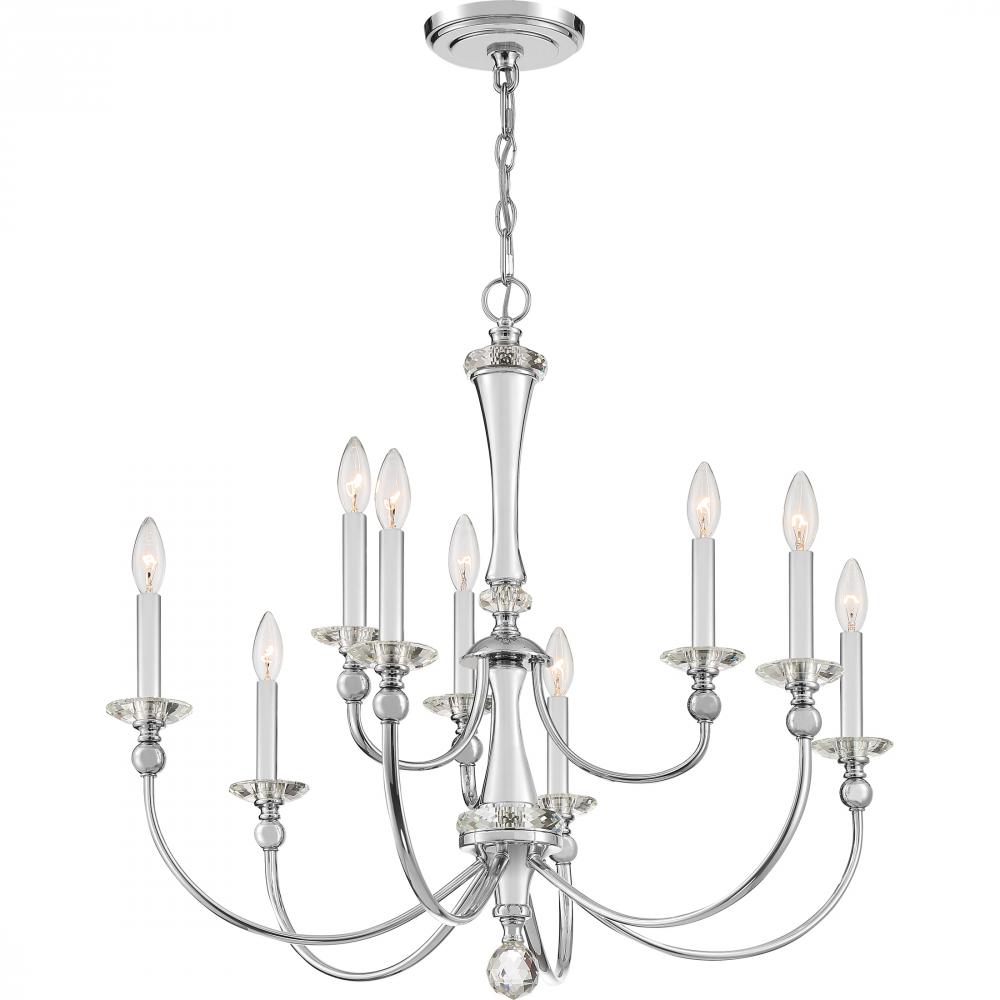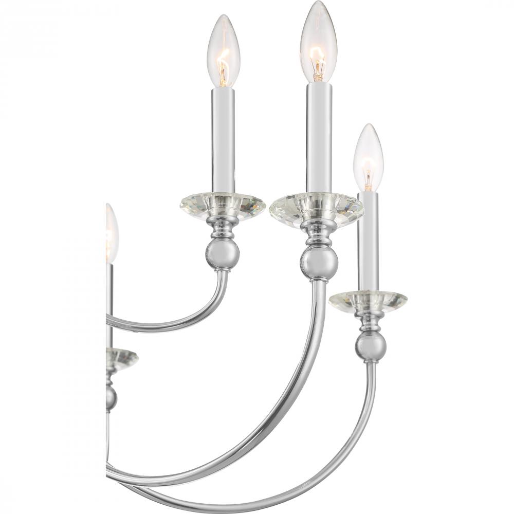 The Mila is a traditional style collection with a touch of modern elegance. Sweeping arms create a slim silhouette and the exposed candelabra bulbs give off a bright glow. This fixture is finished in Polished Chrome and highlighted with a crystal finial an