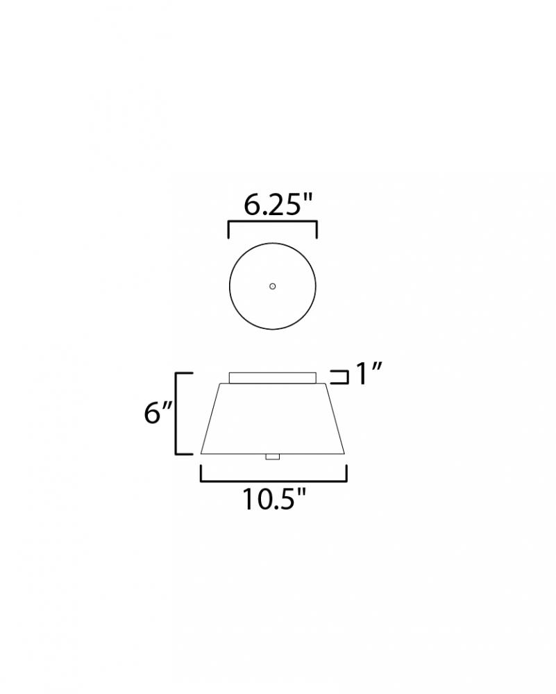 Tapered metal shades are finished in contrasting two-tones of Matte Black and Natural Aged Brass. Dedicated LED light sources cast even lighting across white polycarbonate diffusers. Available in two sizes of flush mount and a dual-plate picture light conf