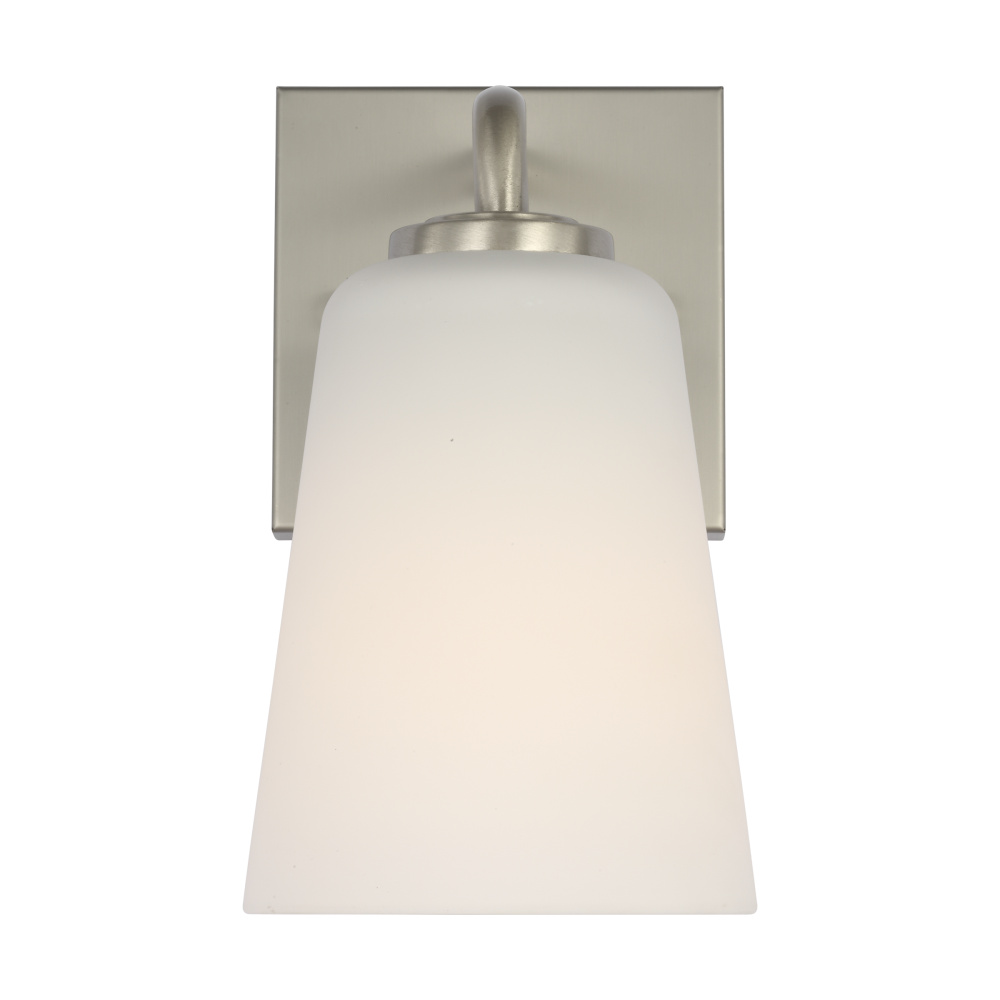 Brushed Nickel finish with White Etched Glass Shade