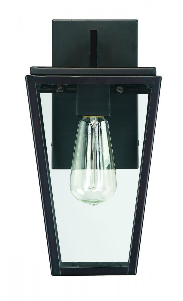 Sleek, contemporary and welcoming light is all yours with the Savoy House Milton 1-light outdoor wall lantern. It’s a fresh, modern take on a classic tapered-box lantern with clean lines and an angular, geometric silhouette. The streamlined frame has a rich English bronze finish and pristine panes of clear glass. It’s an impeccable complement to other hardware and materials on the exterior of your home. Within the lantern panels, one 60W standard size bulb illuminates the area. Milton measures 6.5" wide and 12.75" high and extends 8" from the wall, making it perfect to add chic lighting to the walls of your patio, porch, sunroom or other outdoor living areas. Wet area rated.
