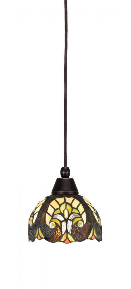 Toltec Lighting 22-DG-9945 Cord Mini Pendant, Dark Granite Finish, 7 Ivory Cypress Art Glass