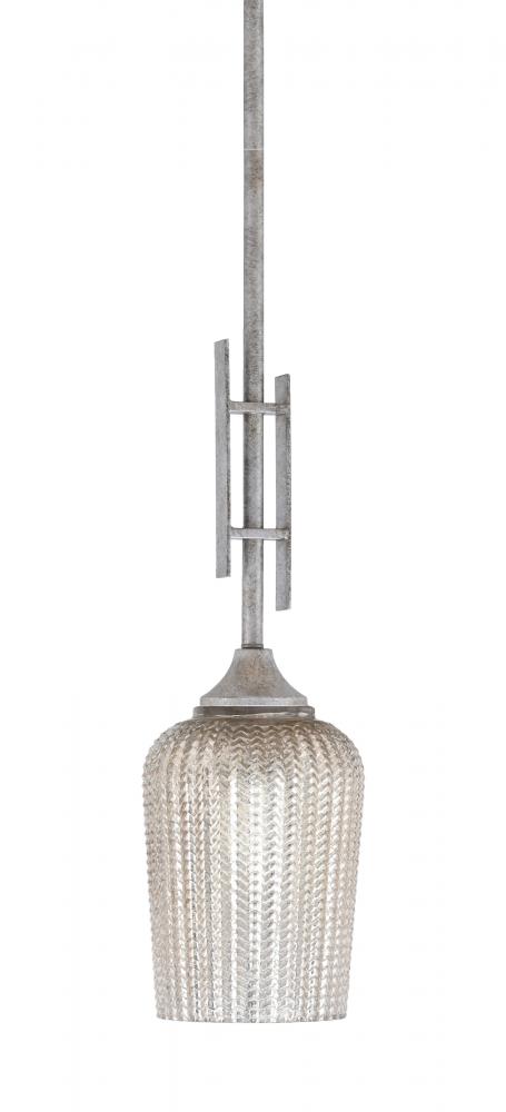 Toltec Lighting 320-AS-4253 Uptowne Stem Hung Mini Pendant, Aged Silver Finish, 5 Silver Textured Glass