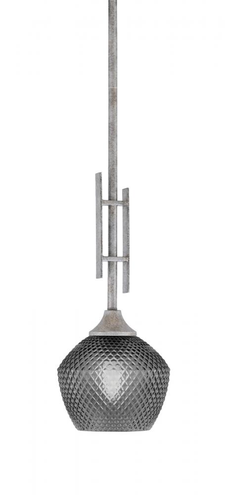 Toltec Lighting 320-AS-4622 Uptowne Stem Hung Mini Pendant, Aged Silver Finish, 6 Smoke Textured Glass