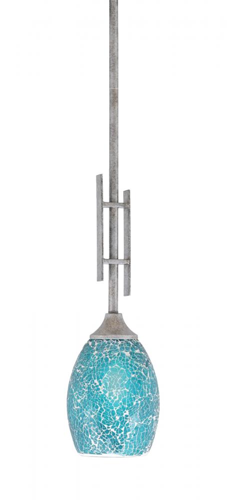 Toltec Lighting 320-AS-5055 Uptowne Stem Hung Mini Pendant, Aged Silver Finish, 5 Turquoise Fusion Glass