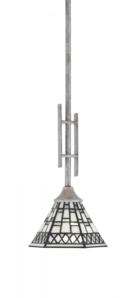 Toltec Lighting 320-AS-9105 Uptowne Stem Hung Mini Pendant, Aged Silver Finish, 7 Pewter Art Glass