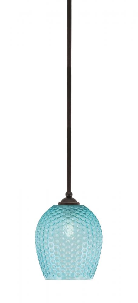 Zilo Stem Hung Mini Pendant Shown In Dark Granite Finish With 7.5 Turquoise Textured Glass