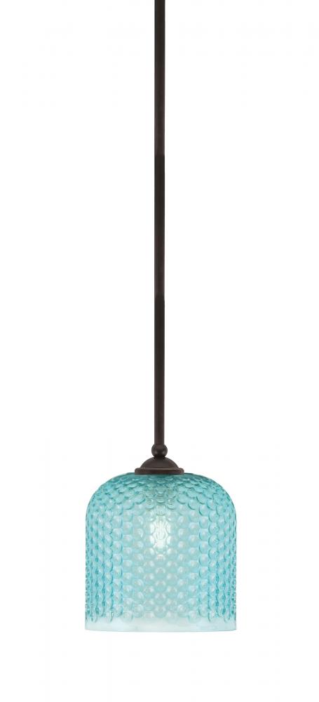 Zilo Stem Hung Mini Pendant Shown In Dark Granite Finish With 7 Turquoise Textured Glass