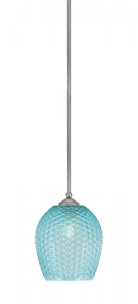 Zilo Stem Hung Mini Pendant Shown In Graphite Finish With 7.5 Turquoise Textured Glass