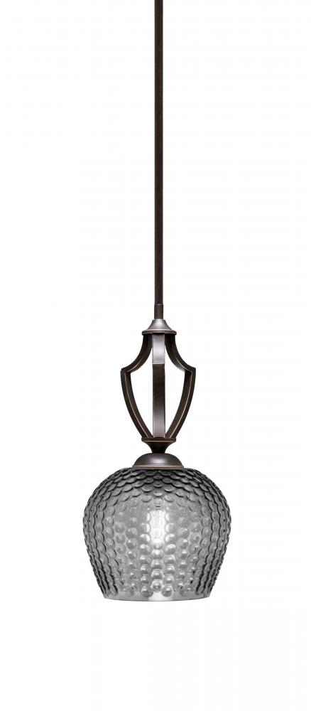 Zilo Stem Hung Mini Pendant Shown In Dark Granite Finish With 6 Smoke Textured Glass