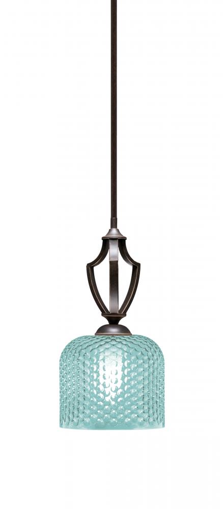 Zilo Stem Hung Mini Pendant Shown In Dark Granite Finish With 6 Turquoise Textured Glass