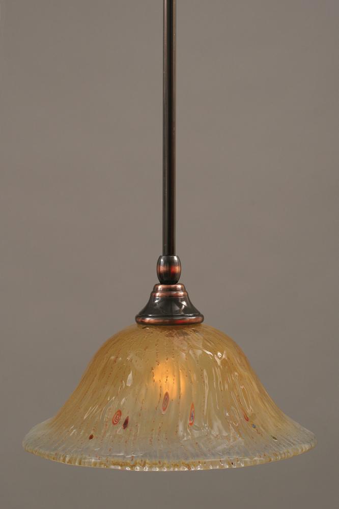Toltec Lighting 23-BC-730 Stem Hung Mini Pendant With Hang Straight Swivel Shown In Black Copper Finish With 10 Amber Crystal Glass