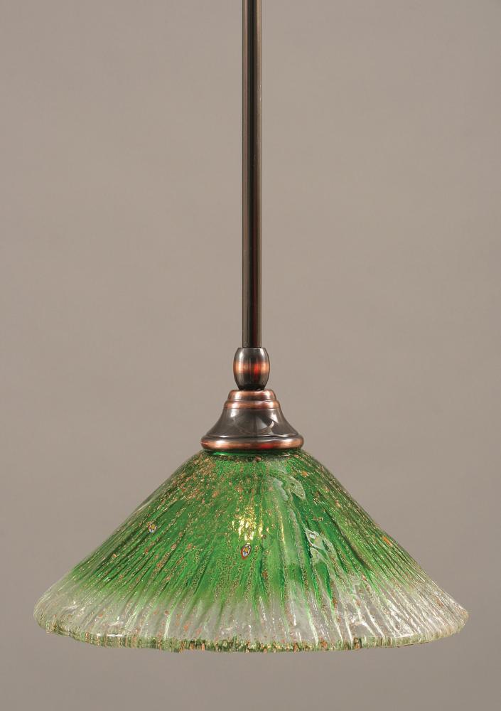 Toltec Lighting 23-BC-437 Stem Hung Mini Pendant With Hang Straight Swivel Shown In Black Copper Finish With 10 Kiwi Green Crystal Glass