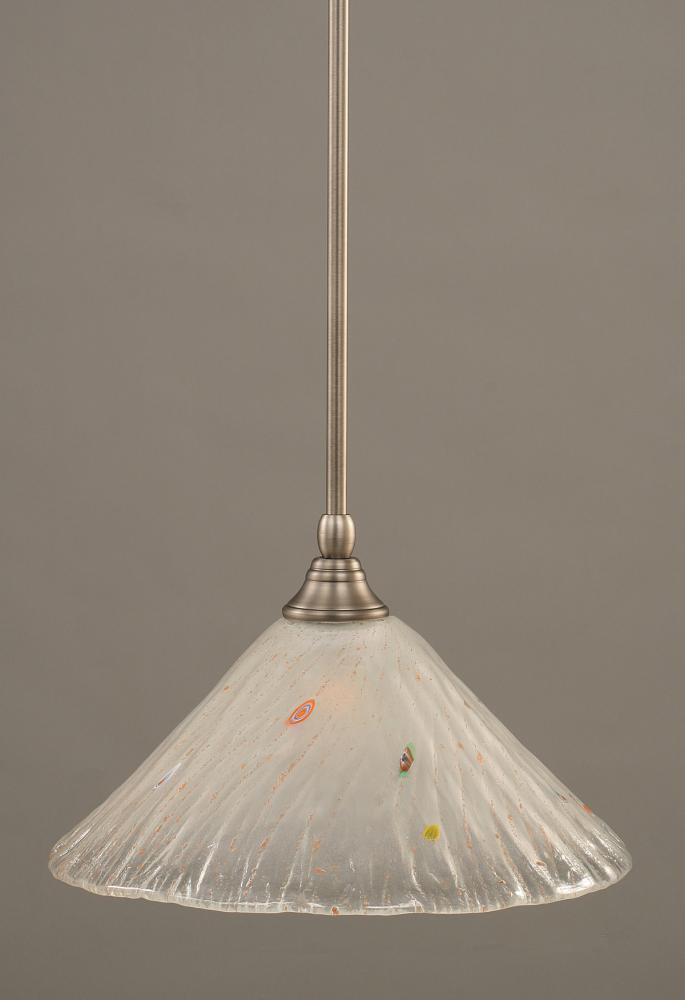 Toltec Lighting 23-BN-701 Stem Hung Mini Pendant With Hang Straight Swivel Shown In Brushed Nickel Finish With 12 Frosted Crystal Glass