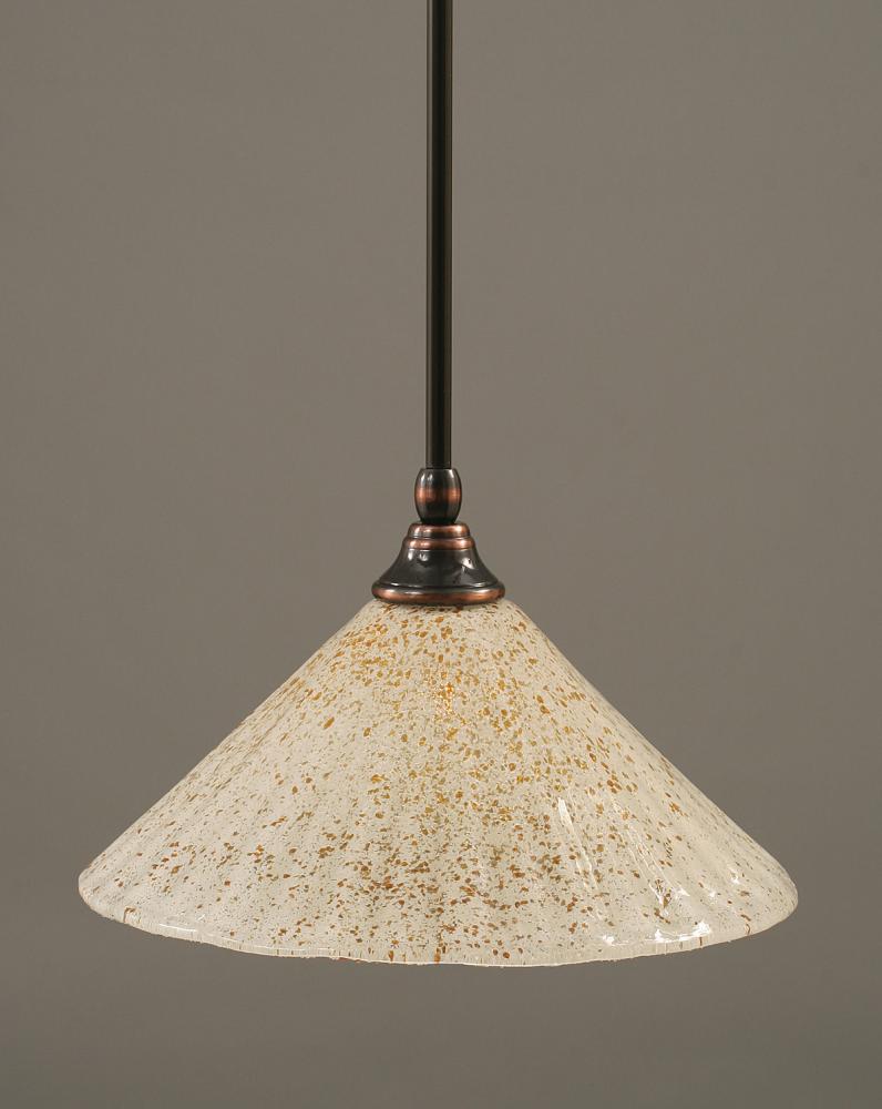 Toltec Lighting 23-BC-702 Stem Hung Mini Pendant With Hang Straight Swivel Shown In Black Copper Finish With 12 Gold Ice Glass