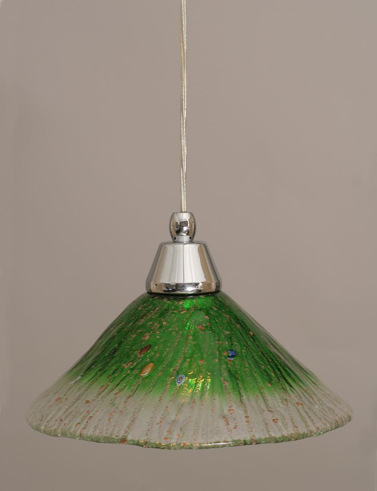 Toltec Lighting 22-CH-437 Cord Hung Mini Pendant Shown In Chrome Finish With 10 Kiwi Green Crystal Glass